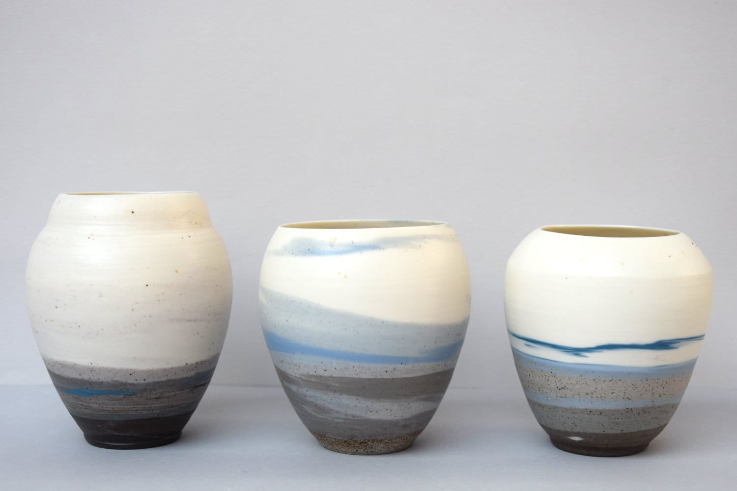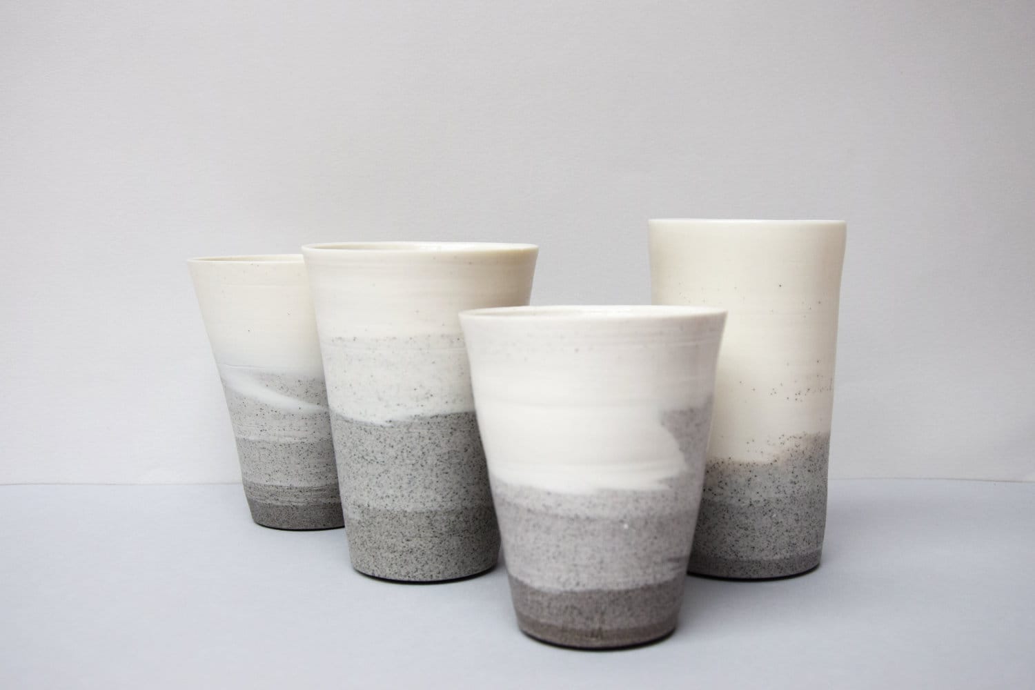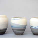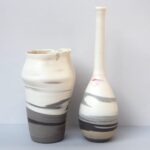 Stoneware and porcelain are two different materials with their own character, color, transparency and shrinkage. I once saw Akira Matsumoto, a Japanese ceramicist, combine the materials porcelain and stoneware in a hand-shaped bowl. This was such a revelation to me that I started researching this technique in my studio. Since my love lies in turning, I started experimenting with turning stoneware and porcelain in/onto each other.